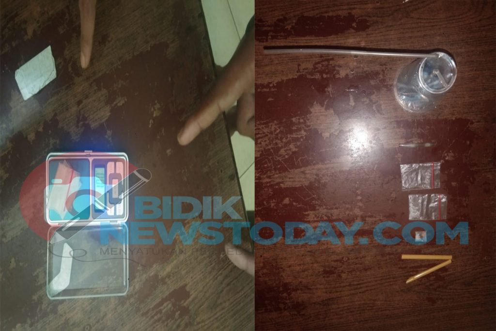 Barang bukti yang berhasil diamankan 1 bungkus plastik klip yang berisikan narkotika jenis sabu dengan berat 1 gram, 1 bungkus plastik klip kecil berisi sabu 1,00 gram 1 buah kaca pirex berisi sisa sabu, 1 buah alat hisap sabu atau bong dan satu 1 buah sendok/sekop yang terbuat dari pipet plastik.
